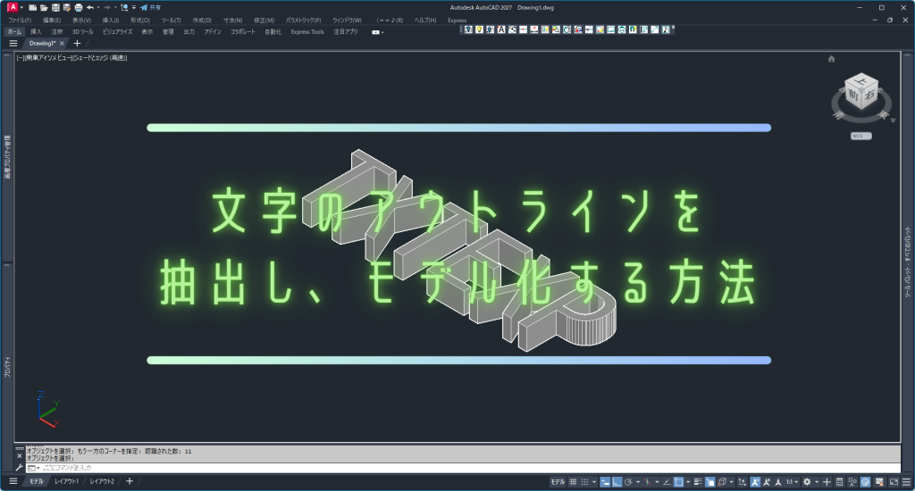 文字のアウトライン抽出には、Express Toolsに含まれる「TXTEXP」コマンドを使用します。TXTEXPを実行すると、文字オブジェクトが分解され、輪郭がポリラインとして作成...