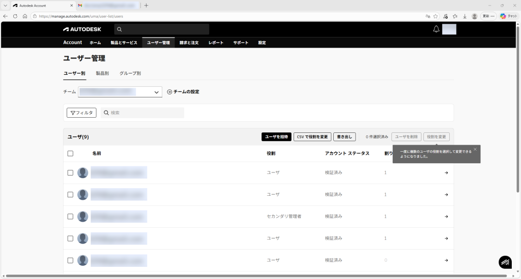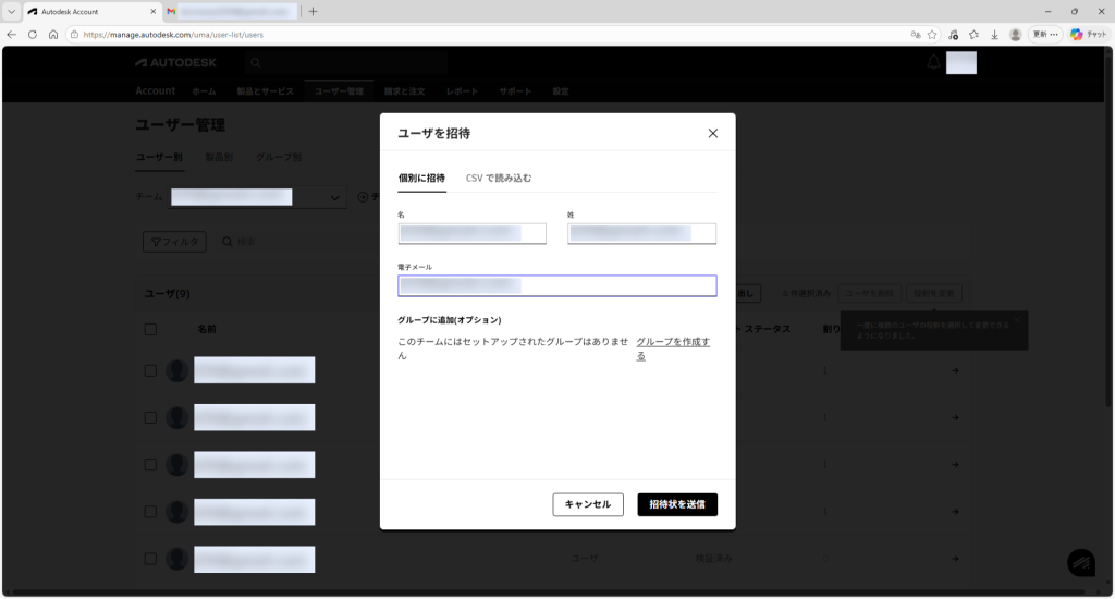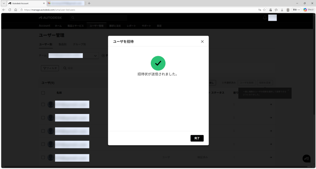 これでAutodeskアカウントの作成とユーザー招待は完了です。