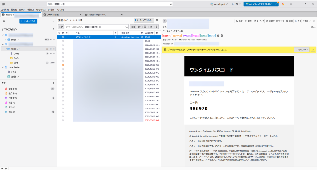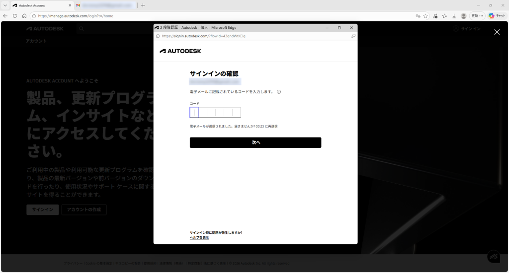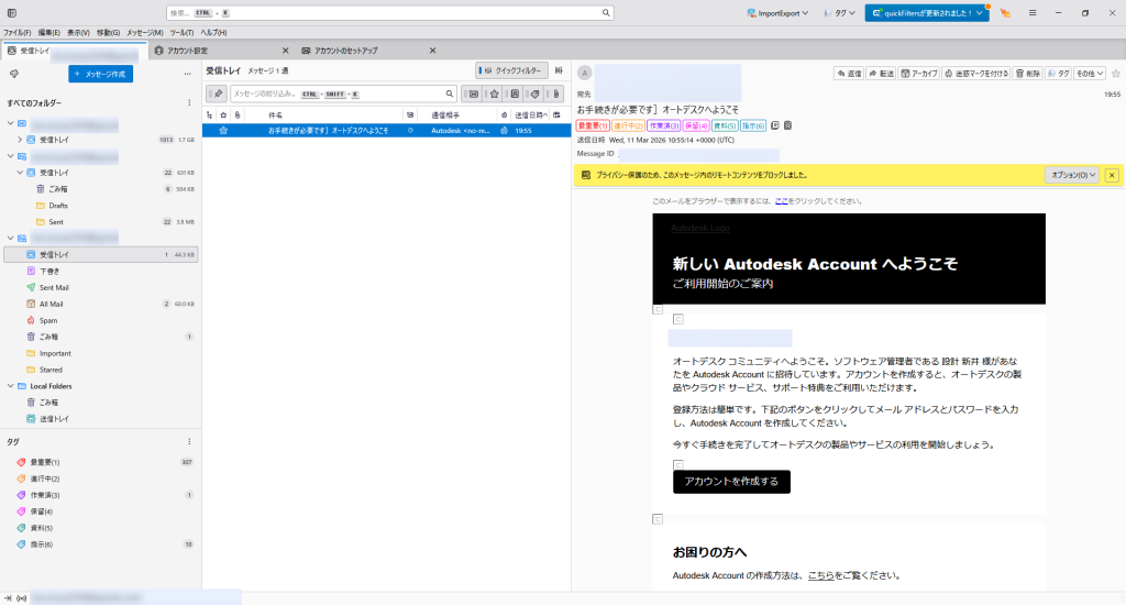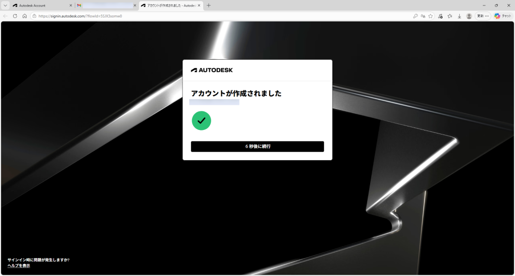 登録後、確認メールが届くので、メール内のリンクをクリックして認証を完了させます。これでAutodeskアカウントが使用できるようになります。
