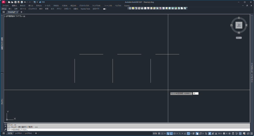 (prompt "\n=== FILLET(線分選択モード専用) ===")→ フィレットコマンドを呼び出して