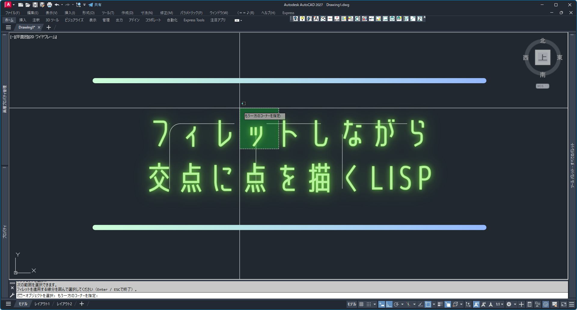 このLISPは、フィレットを実行しながら交点にPOINTを自動作成できるコマンドです。