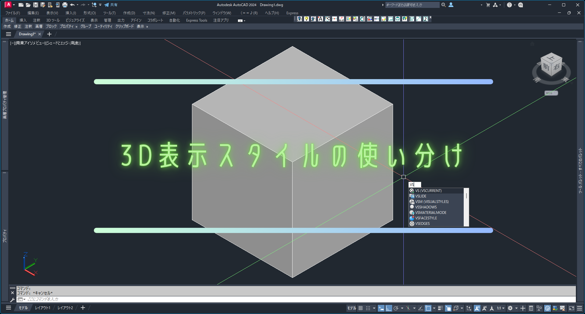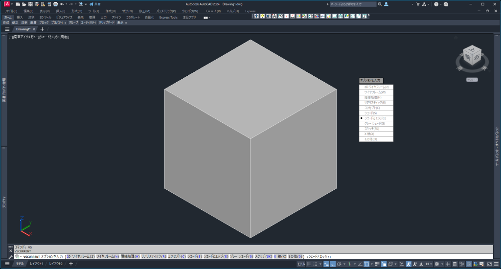 実際に使用する表示スタイルは、「シェードとエッジ」「X線」「2Dワイヤーフレーム」の3つでいいです。