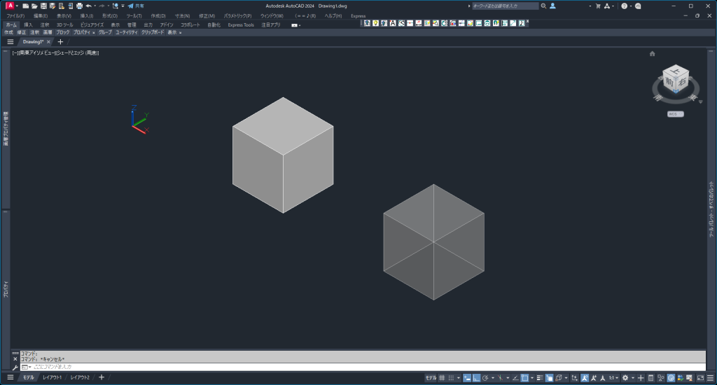 ※一方でもうひとつある通常のワイヤーフレームは見た目は似ていますが、ソリッド自体は存在しているため、向こう側の線を直接つかめない場合があります。