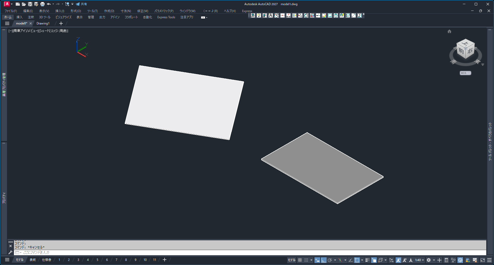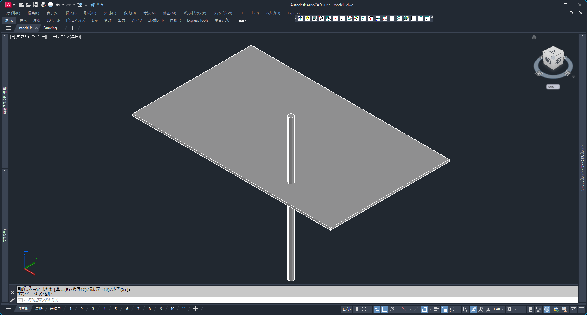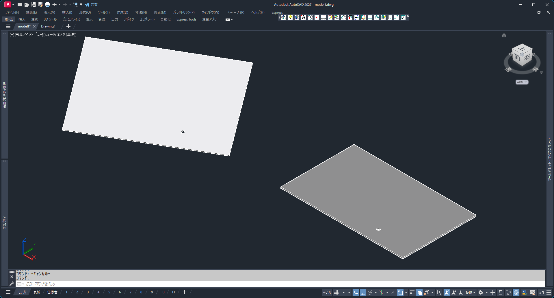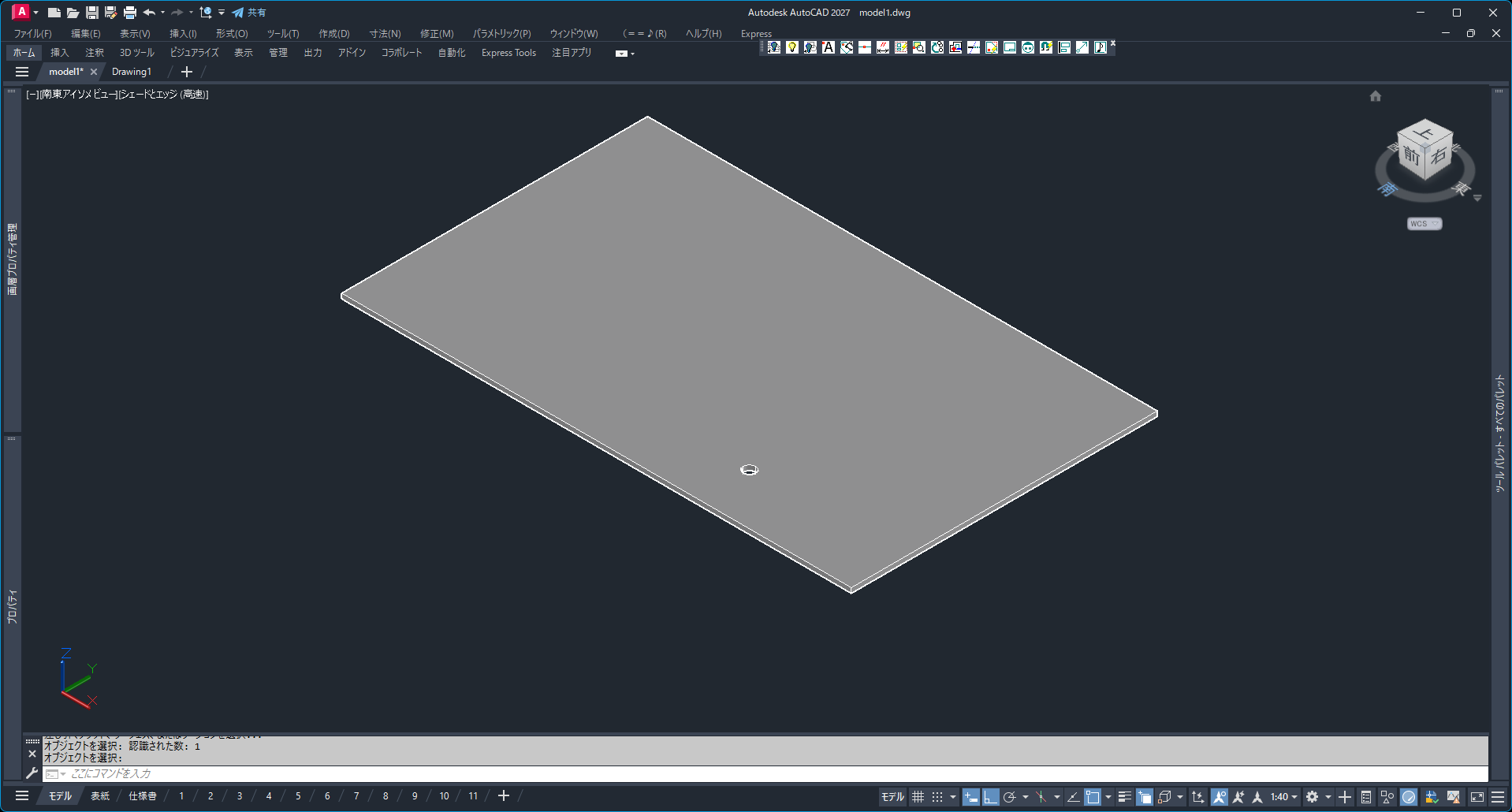 - 斜めのモデルが床(XY平面上)に置いた状態になりました