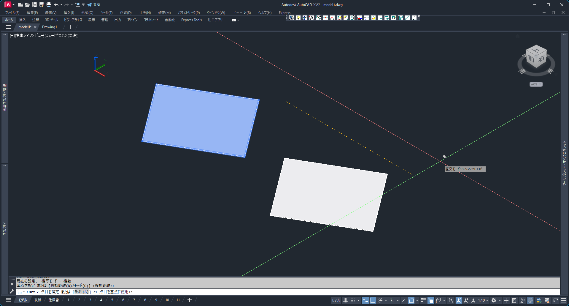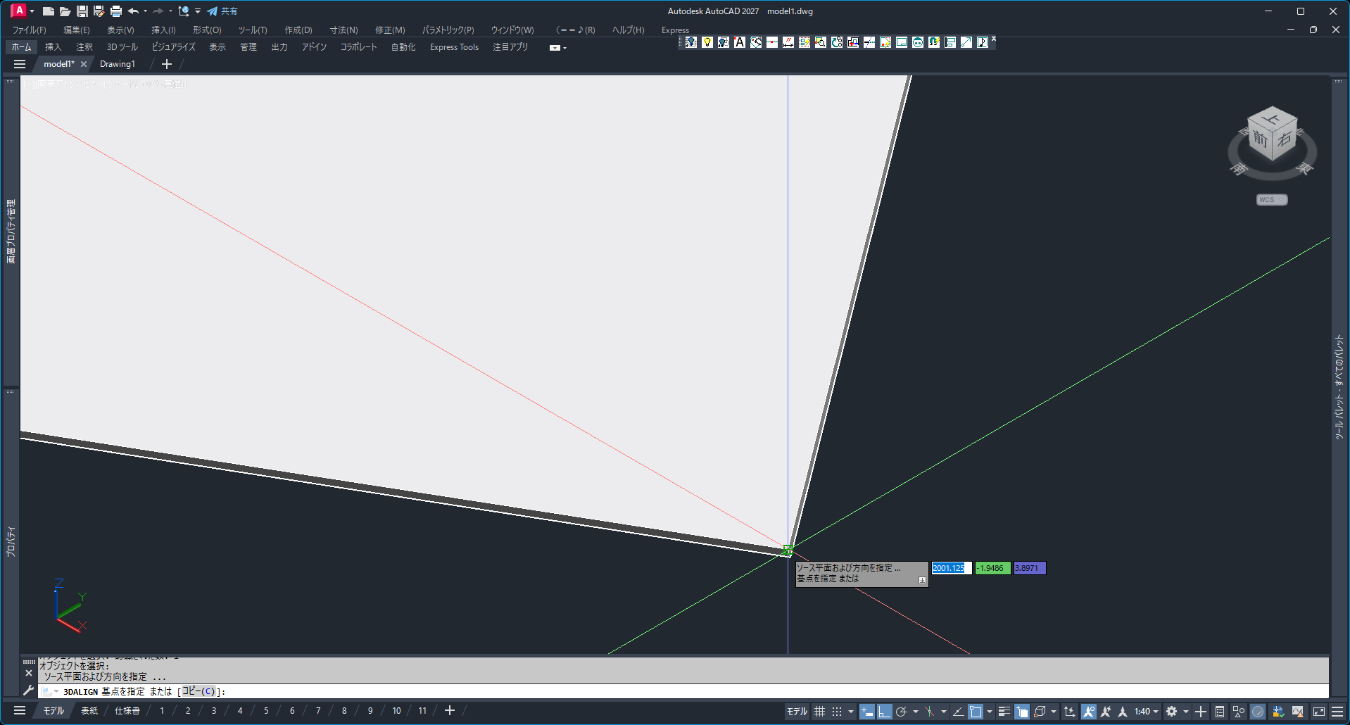 - 画像のように空間に斜めに配置されたモデルがあります