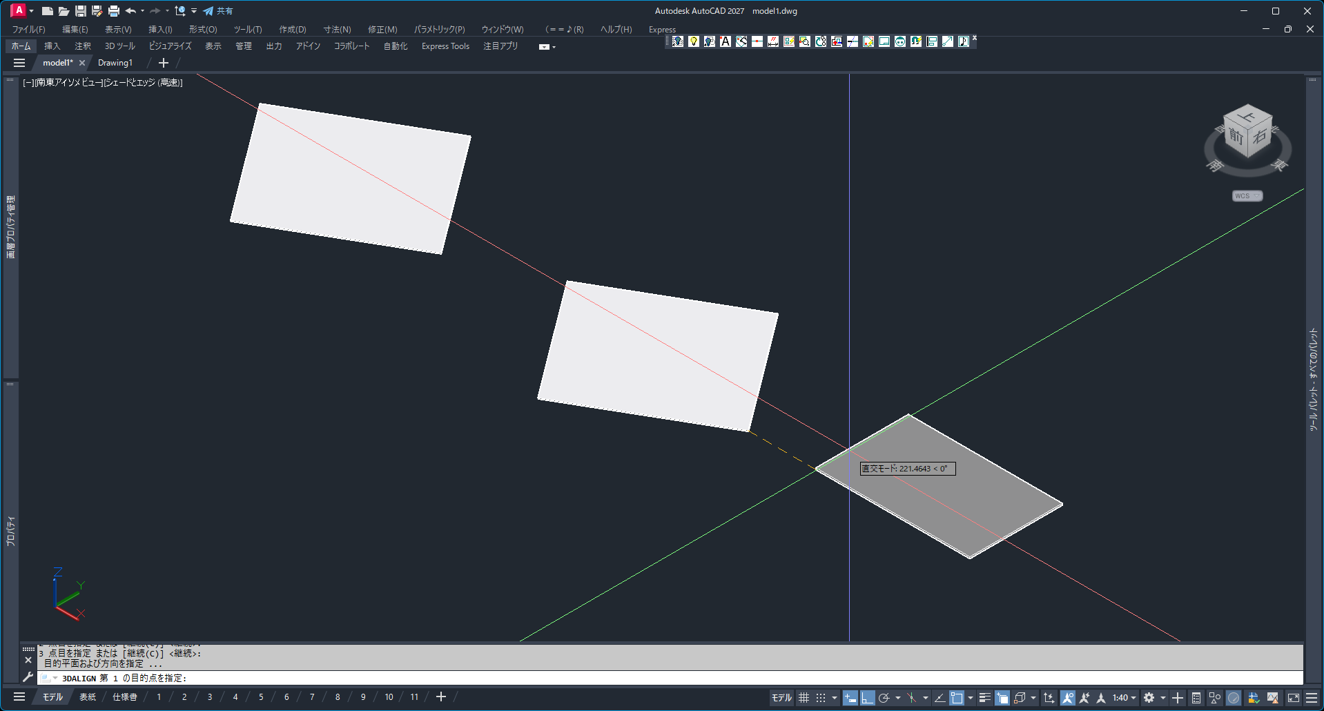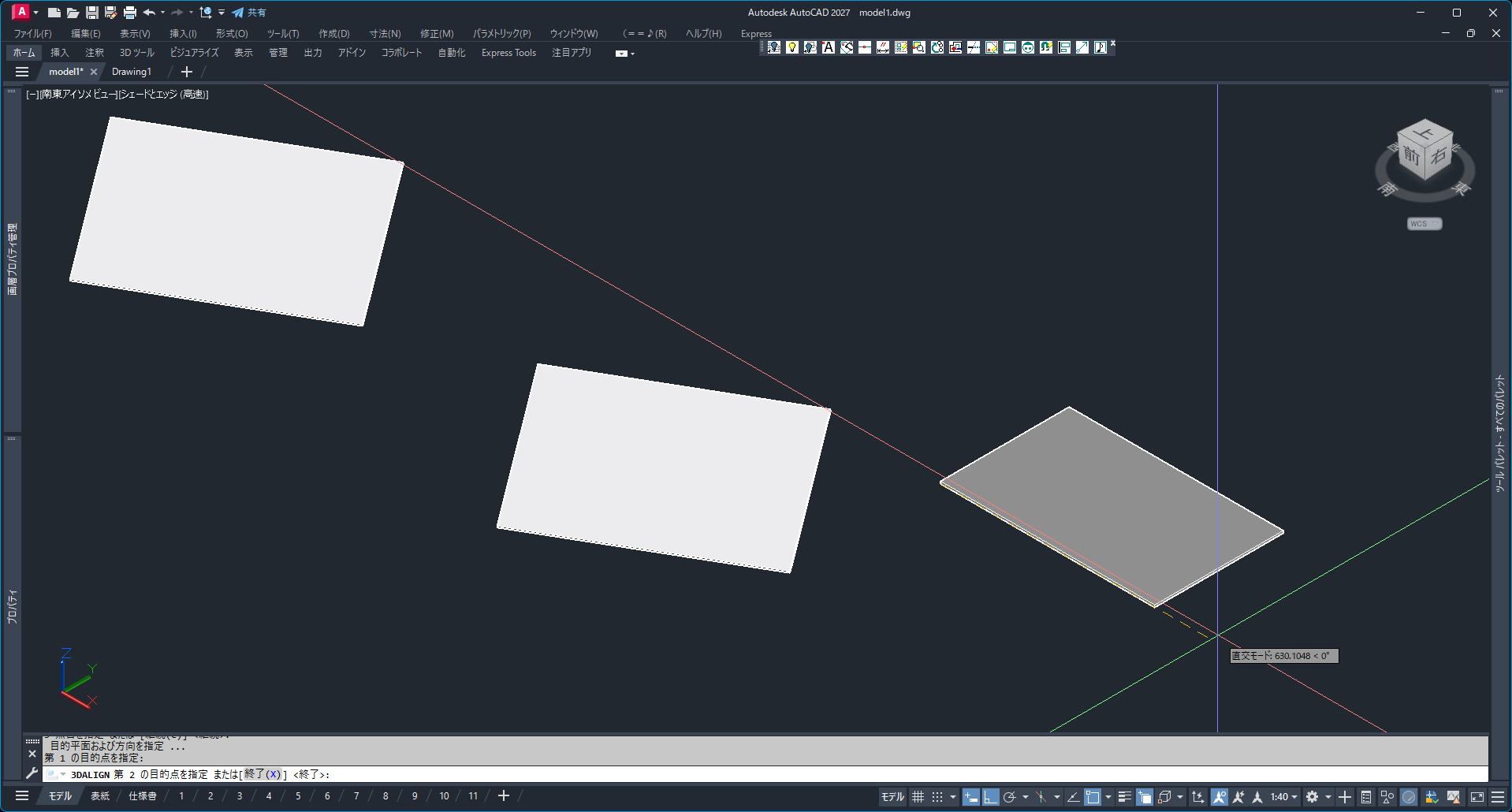 - コピーしたモデルを3D位置合わせ(3DALIGN)