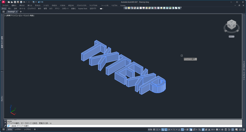 - コマンド「UNI(UNION)」を入力します