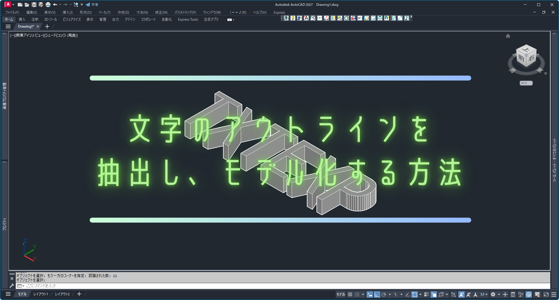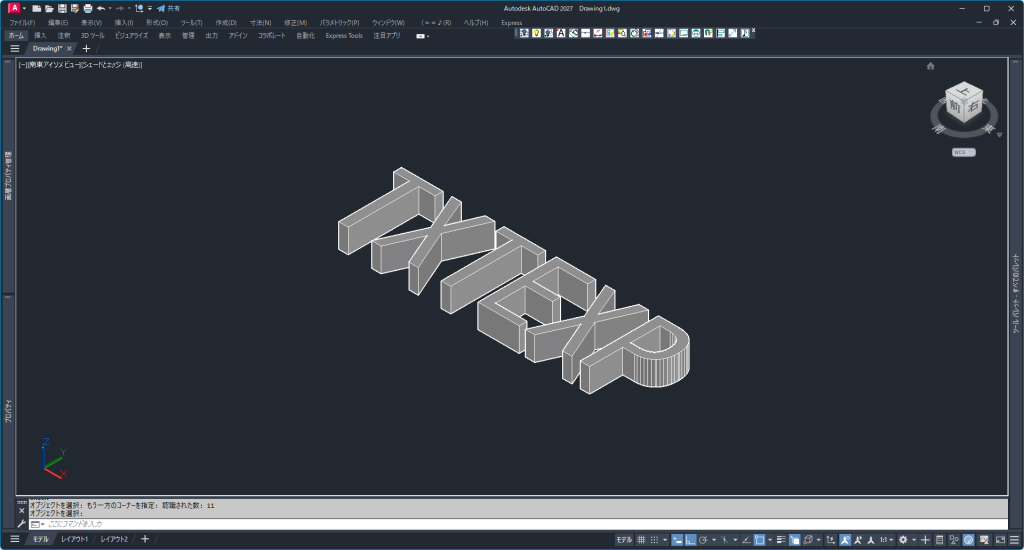 - コマンド「EXT(EXTRUDE)」を入力します